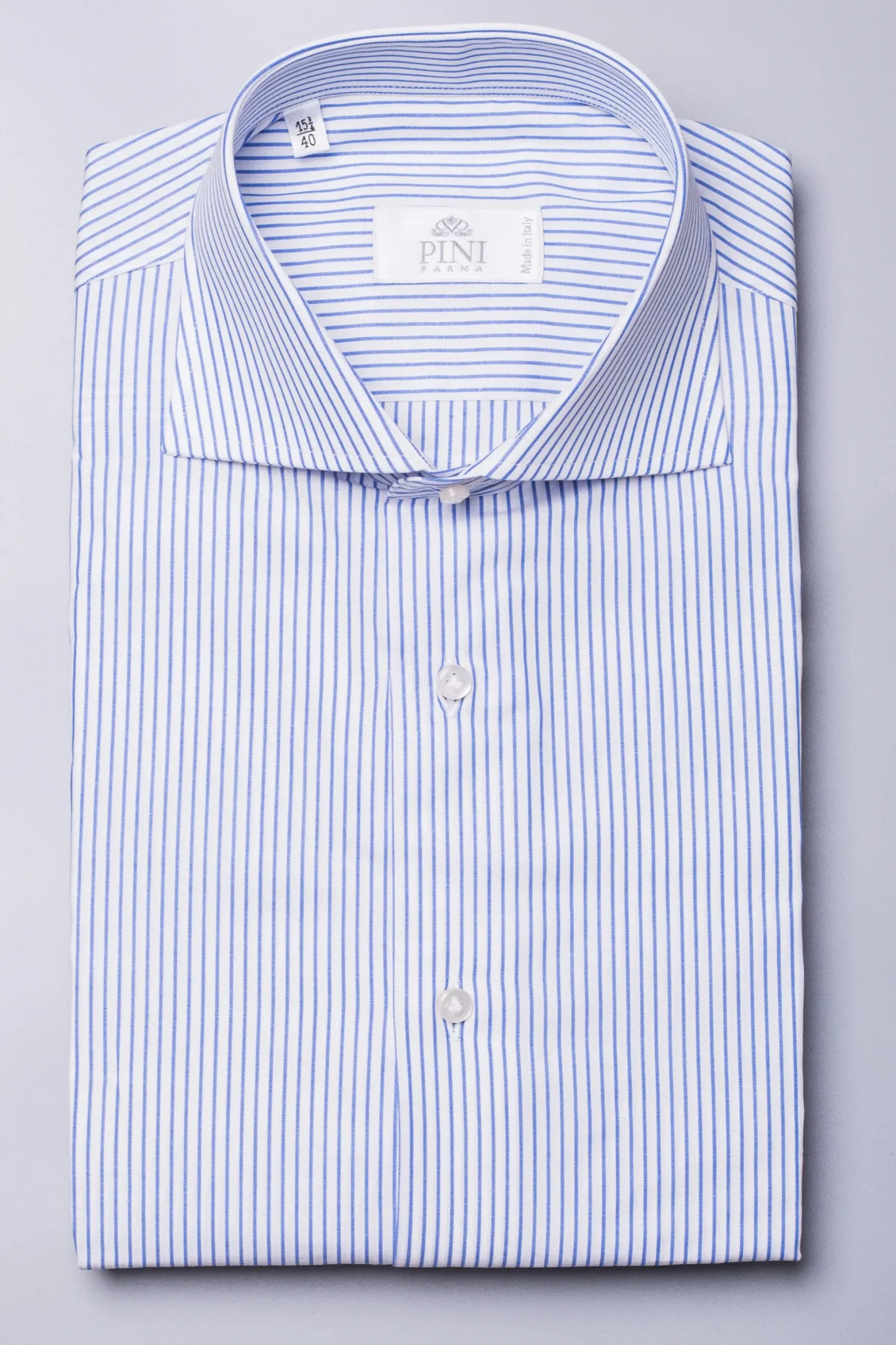 Made By Our Selected Italian Tailors Who Have A Strict Eye For Detail, This Avio Blue Striped Shirt Is Made With A Slim Fit Which Makes It Both Elegant And Modern At The Same Time.