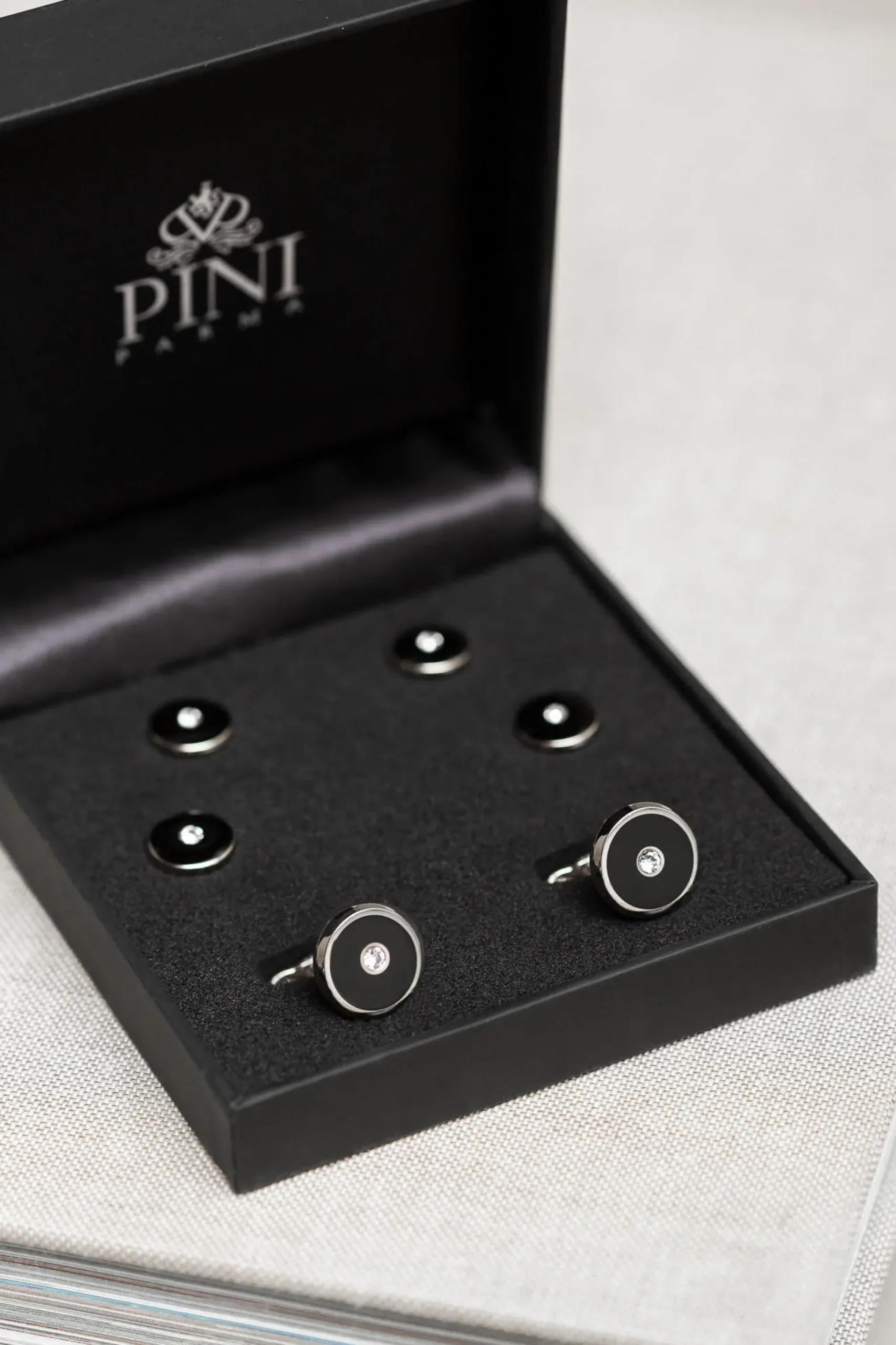 Our Set Of Black Cufflinks And Dress Studs With Swarovski Crystal Will Pair Itself Perfectly With Our Tuxedo Shirts And Elevate Any Tuxedo Look.