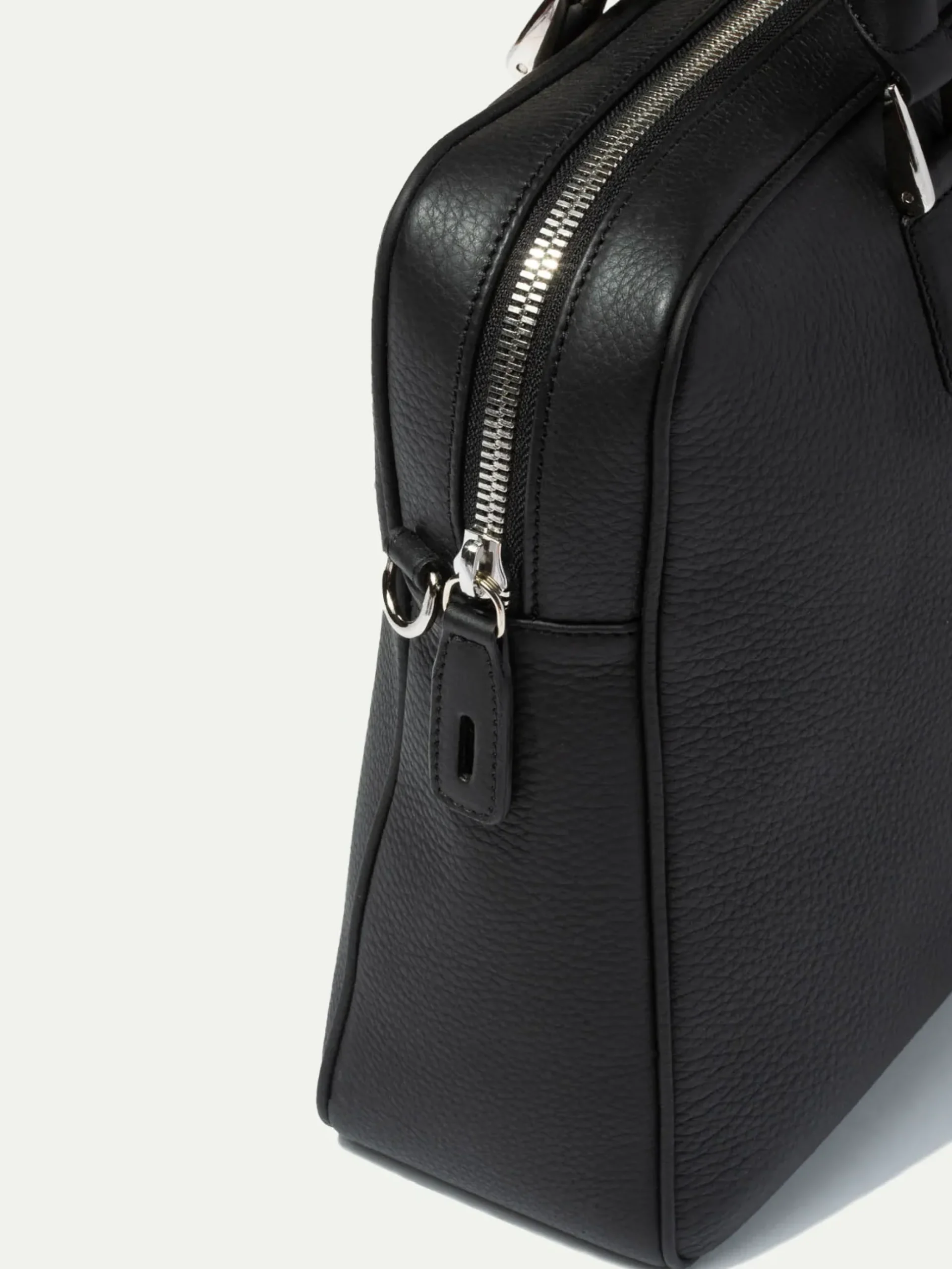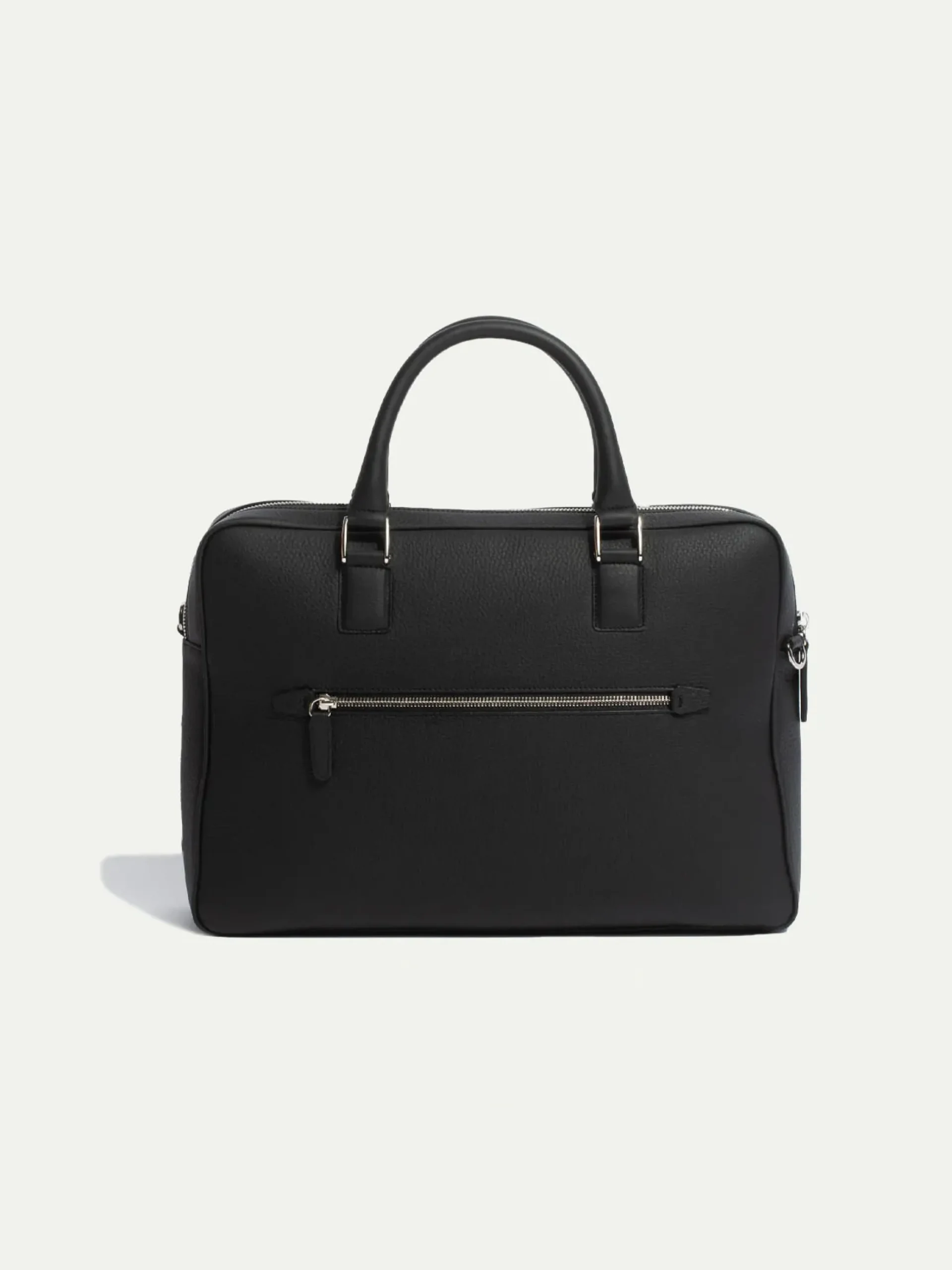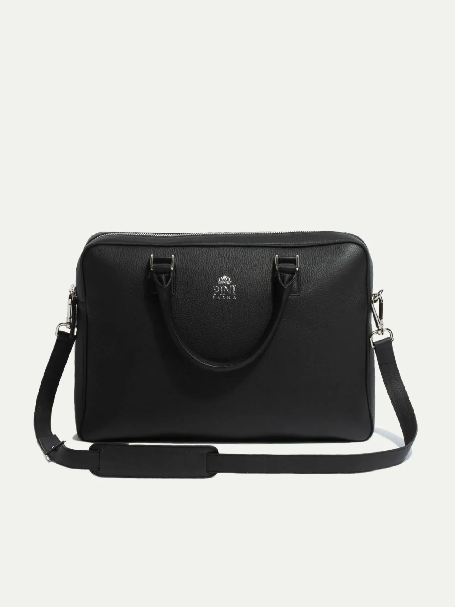 Thin And Elegant Business Briefcase Featuring One Large Exterior Zipped Pocket, Three Flat Pockets And One Zipped Pocket On The Interior. A Leather Shoulder Strap With A Leather Patch For Added Comfort Finishes The Garment.