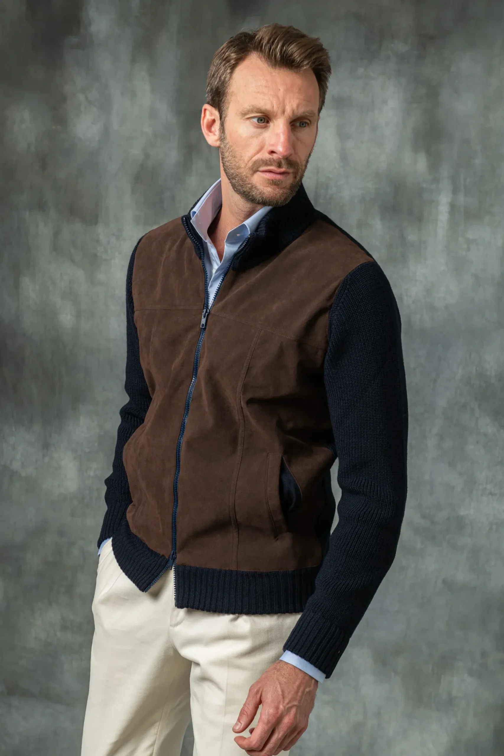 Warm And Elegant, Our Cardigan Will Add Casual Elegance To Any Outfit. It Features An Alcantara Front Panel, A Full Zip Closure And Welt Pockets.