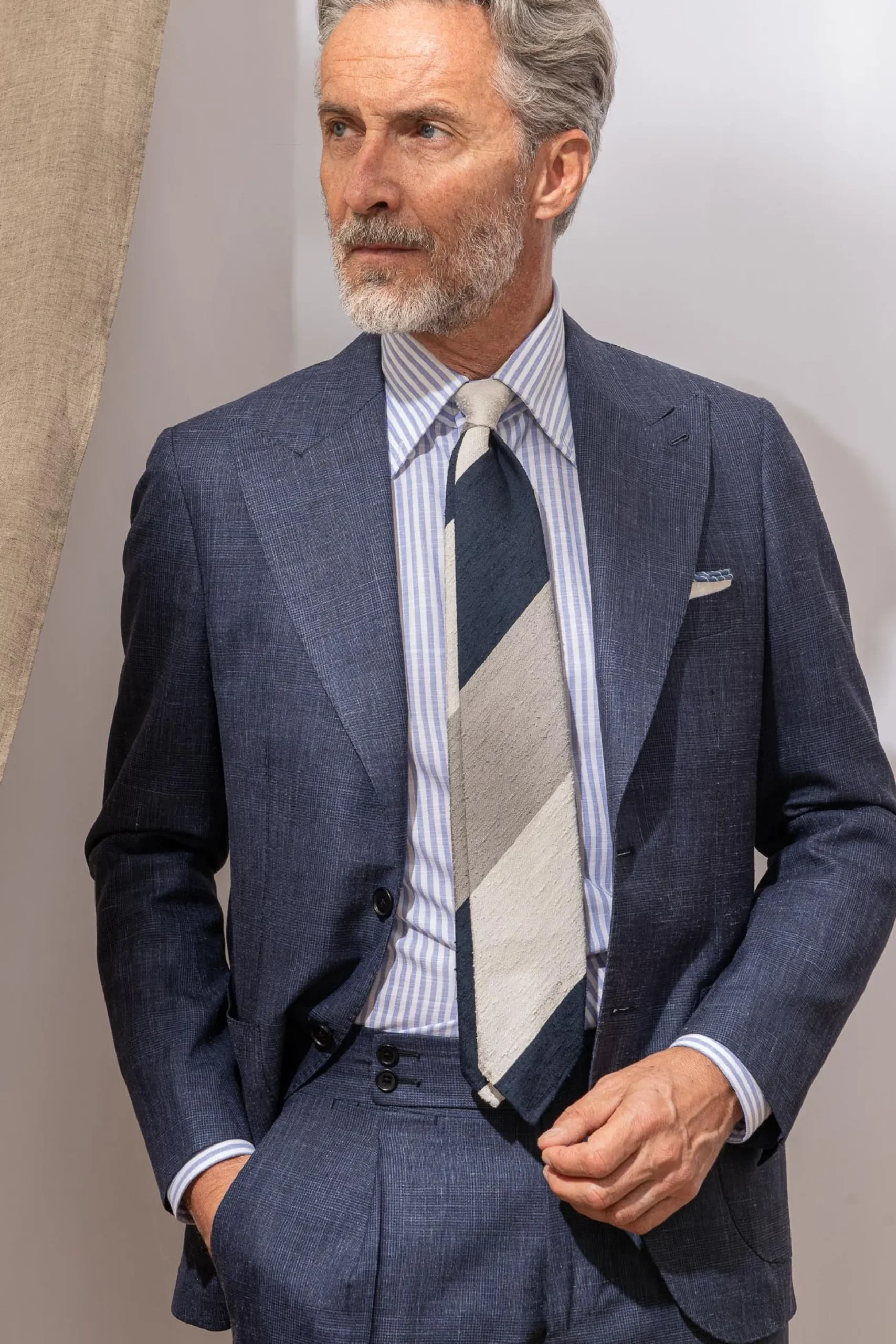 The Shantung Silk Is A Luxurious Fabric Known For The Irregularity Of The Surface And The Presence Of Precious Slubs In The Warp. The Texture Of The Tie Has Rich And Rough Texture. Every Tie Is Unique Because The Slubs Are Distributed Randomly. In Order To Emphasise The Beauty Of This Shantung Fabric, The Tie Is Made Unlined And The Edges Are Hand-Rolled.