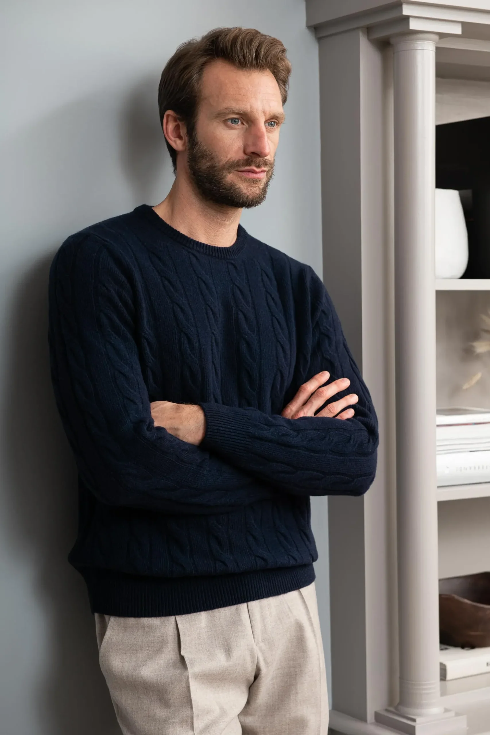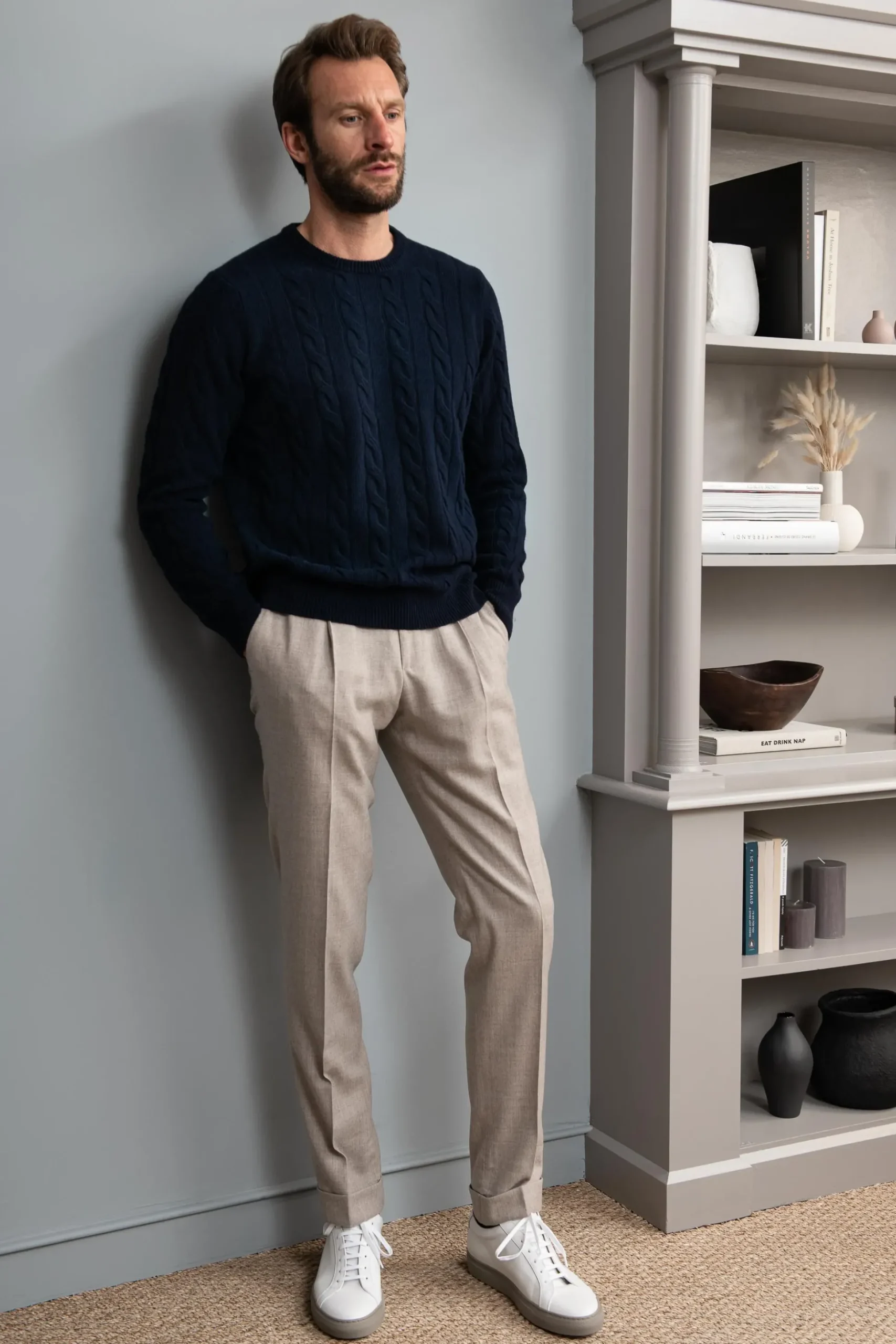 This Cable Knit Sweater Has A Textured Weaved Pattern And Is Made From A Blend Of Wool And Cashmere. Warm As Well As Comfortable, This Sweater Adds A Textual Element And Never Goes Out Of Style. Wear Underneath A Jacket Or Paired With A Suit.