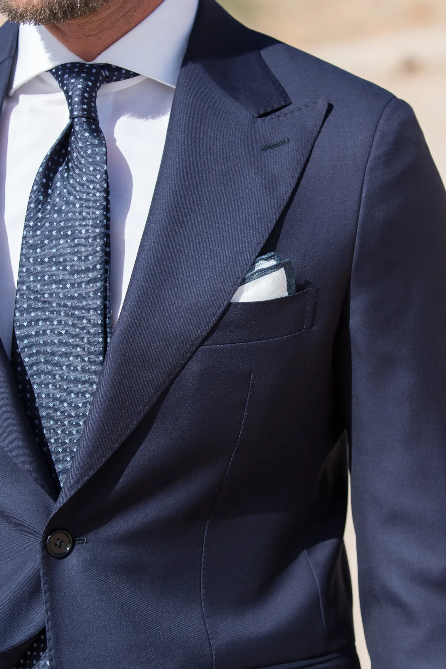 The Chest Pocket “Barchetta” (Small Boat) Is Cut With The Upper Corner Pronounced Recalling The Shape Of A Boat And Confers Harmonious Proportions At The Level Of The Chest.We Created For This Suit, A Tailored Trousers With Single Pleats, A High Waist, A Large Extended Tab Fastening Belt And The Side Adjusters.You Will Find The Quality Of The Details In The Side Pockets With Amf Stitching, The V-Shaped Slit In The Back Waistband, The Welt Back Pocket And The Small Change Pocket. We Have Left Extra Fabric Inside At The Seams, So As To Allow For Simple Alterations If Needed. This Allows For The Waist, Hips And Legs Be Let Out. The Cuff Is Left Long On Purpose So As To Allow It To Be Short, Long Or With Turn-Ups So Giving That Touch Of Individuality