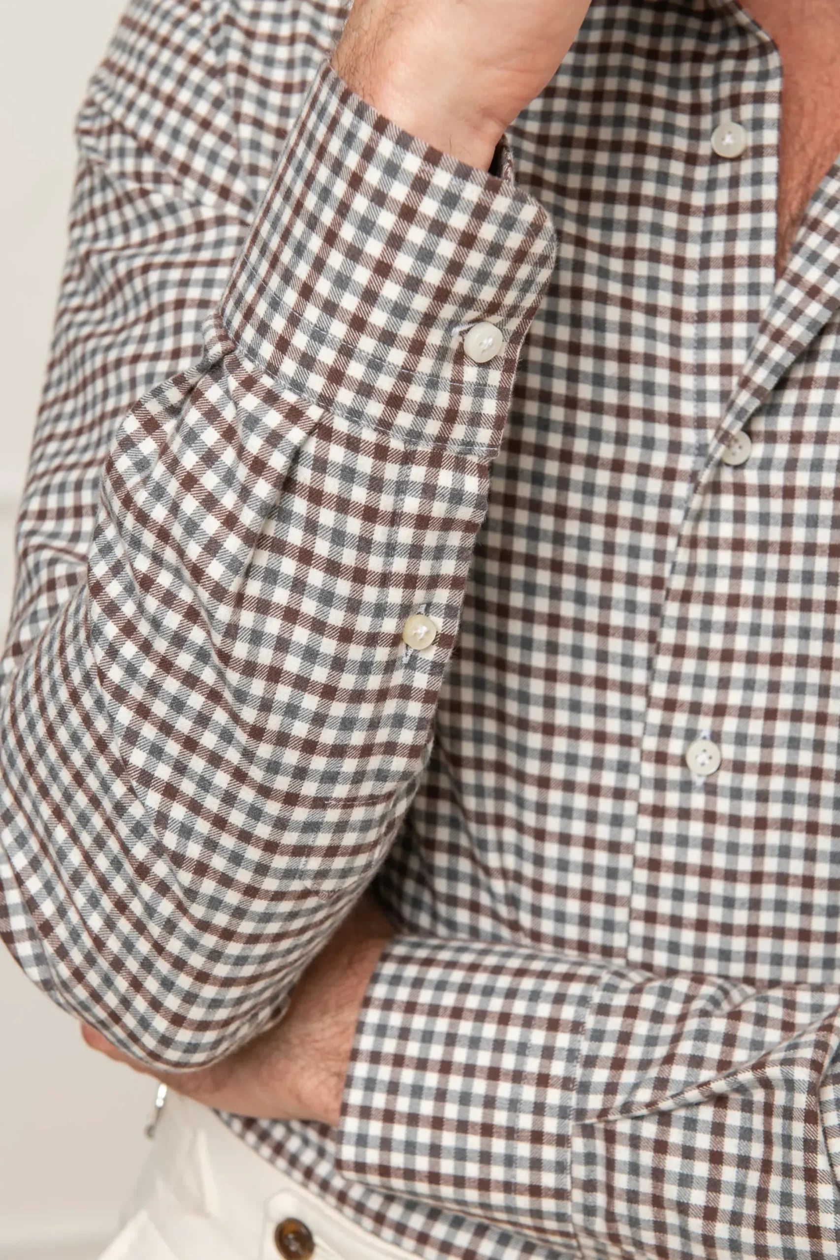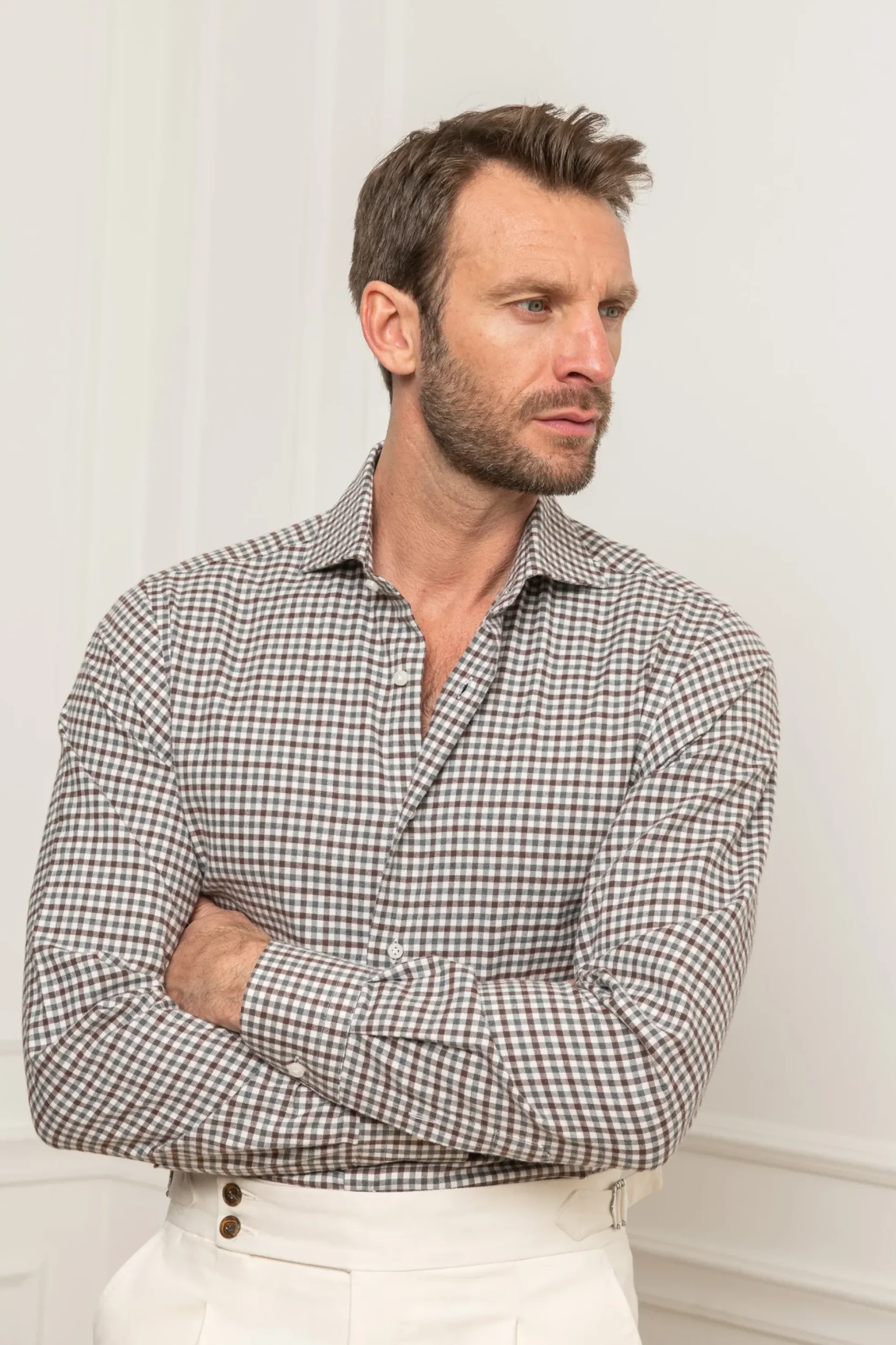 Made In Italy By Renowned And Trusted Shirt Maker, This Vichy Patterned Shirt Has A Slim-Fit. Perfect When Worn Under A Knit Or Safari Jacket.