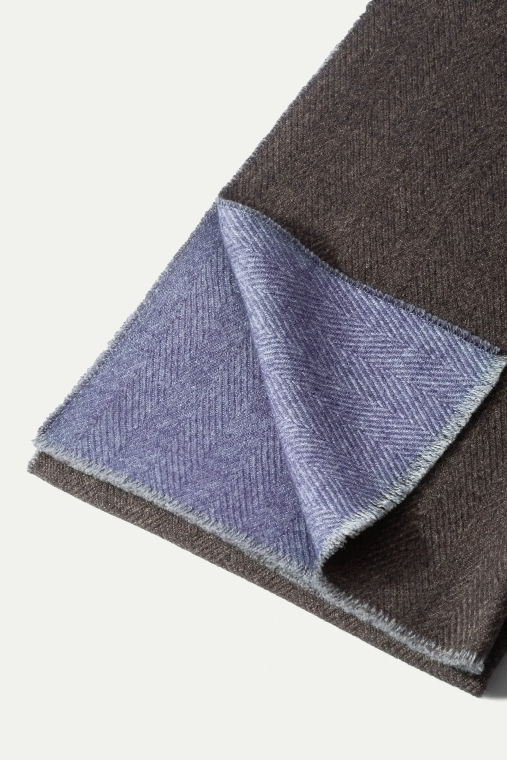 Brown And Light Blue Reversible Herringbone Scarf – Made In Italy|Pini Parma Best Sale