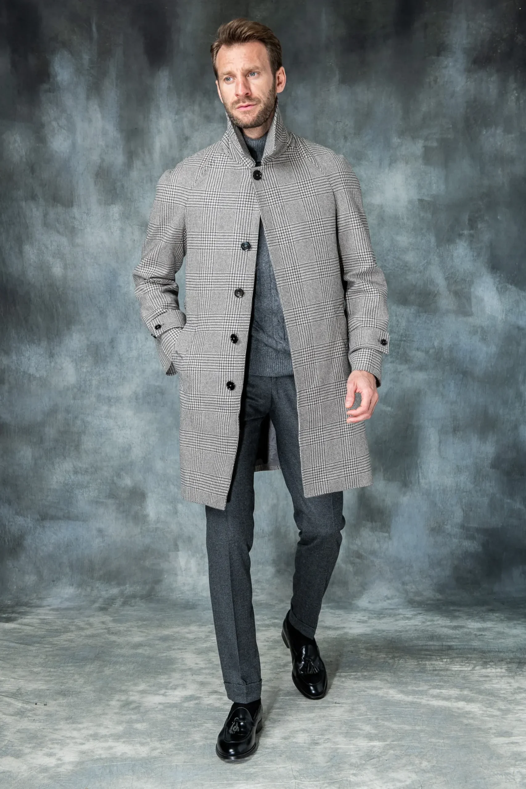 Our Raglan Coat Features A Five-Button Closure Up To The Neck, A Waist Belt And Diagonal Front Welt Pockets. A Box-Pleat At The Back Finishes The Piece.