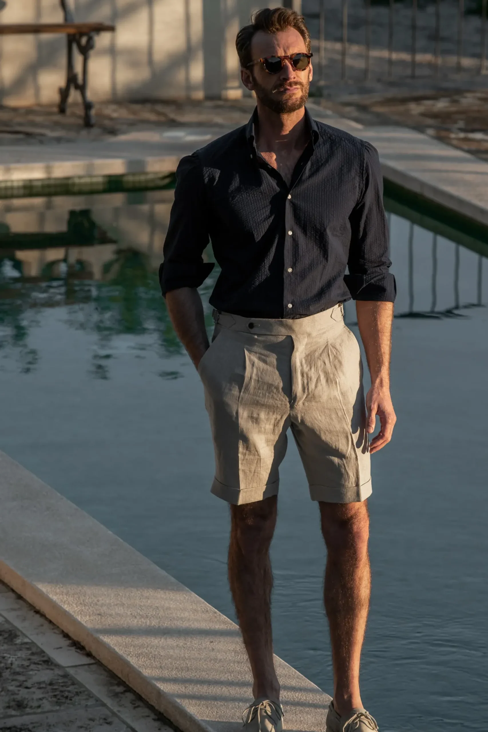 The Seersucker Is Made Using A Weaving Technique That Adds Relief To The Fabric By Alternating Very Tight Cotton Threads With Looser Threads. Warp Colored Threads Are Streched In The Weaving Machine While Weft Threads Are Added. When The Fabric Is Finished, The Lines Will Create A “Wave” Which Make The Material More Breathable. This Feature Causes The Fabric To Be Mostly Held Away From The Skin While Being Worn, Facilitating Heat Dissipation And Air Circulation. The Seersucker Is The Perfect Fabric For Spring And Summer.