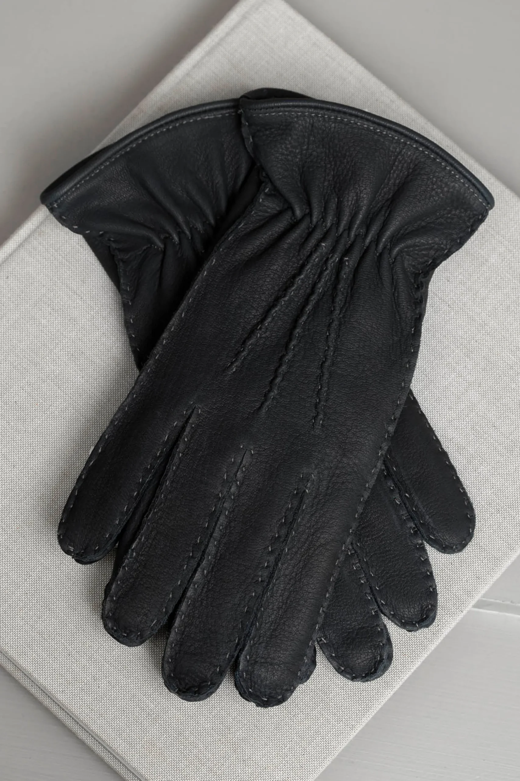 Being A Perfect Pair For Any Occasion, These Elegant Dark Blue Gloves Are Cut From Deerskin Leather And Are Lined With 100% Cashmere.