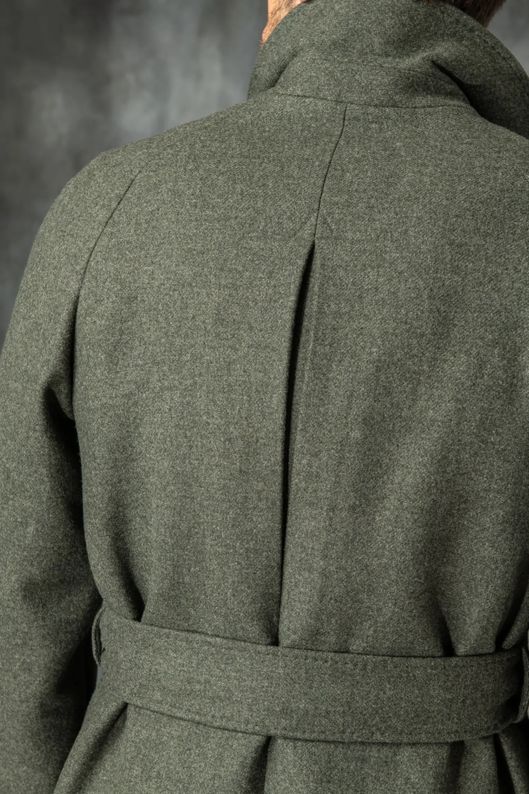 Our Raglan Coat Features A Five-Button Closure Up To The Neck, A Waist Belt And Diagonal Front Welt Pockets. A Box-Pleat At The Back Finishes The Piece.