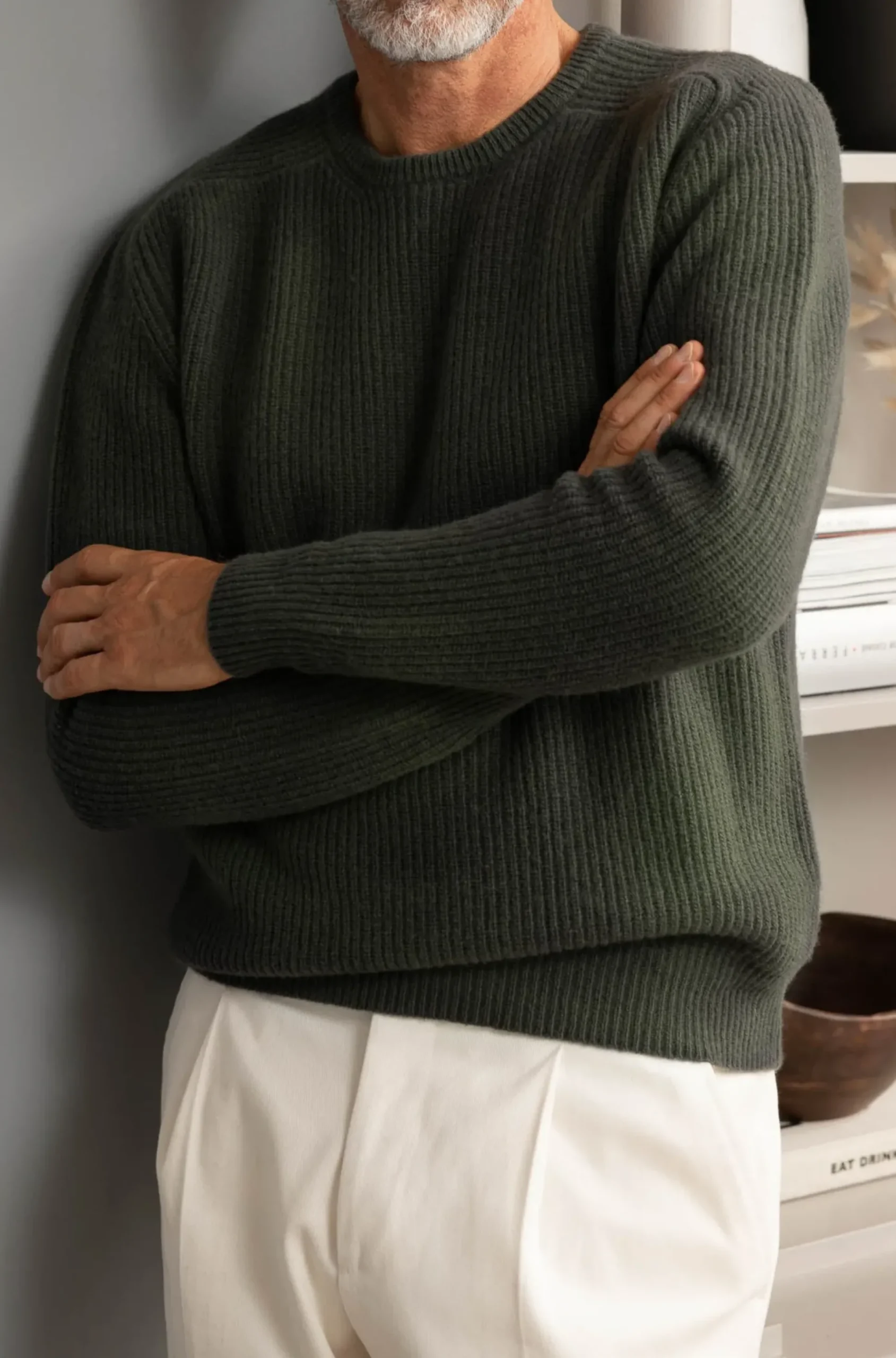 Ribbed Hammer Sleeve Crew Neck Sweater Made From A Blend Of Wool And Cashmere.