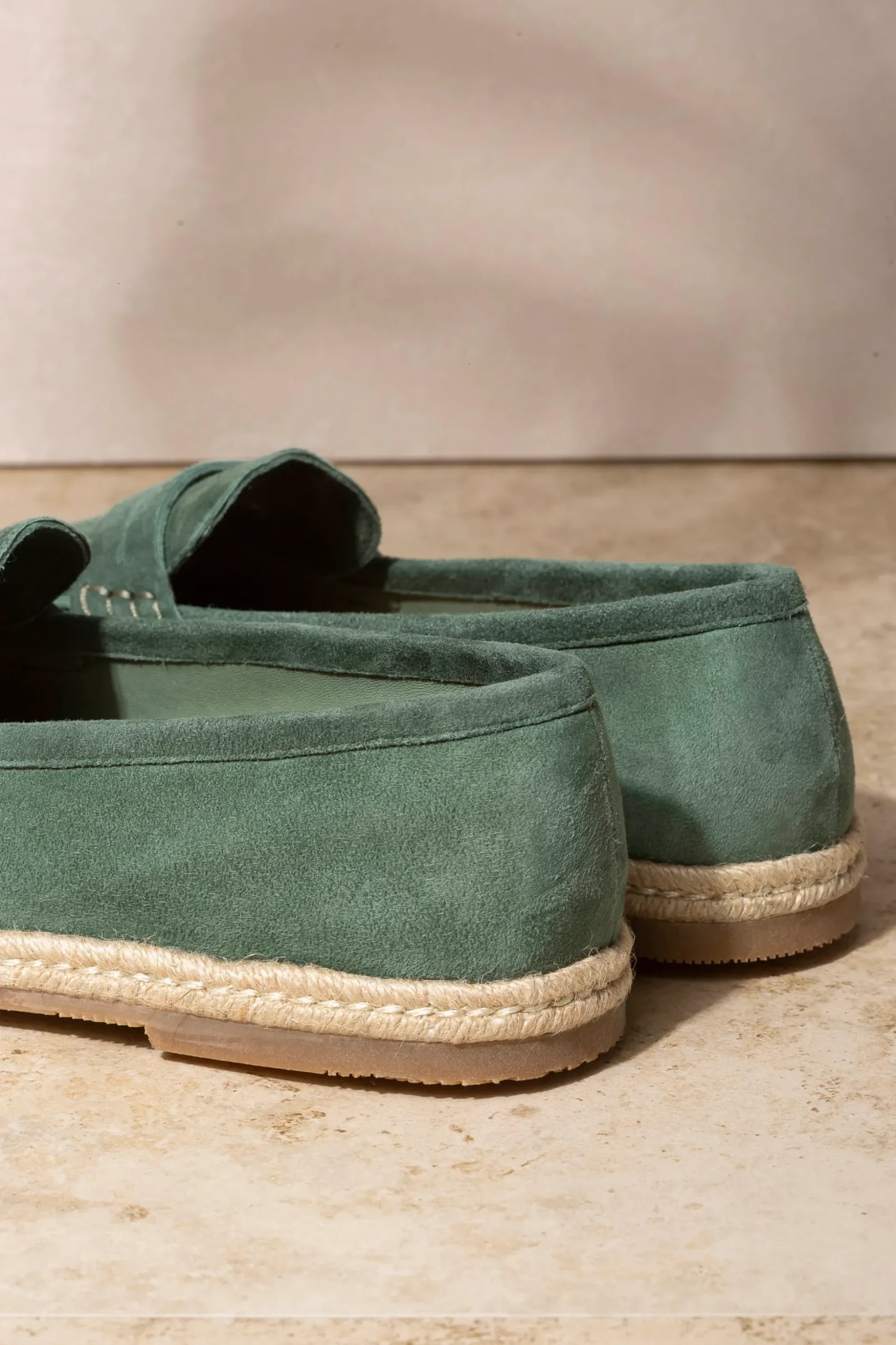They Feature A Green Suede Leather Upper Part And An Outsole Made From A Blend Of Natural Jute And Rubber. Made From Leather, The Insole Is A Sure Indication Of Comfort And Durability.