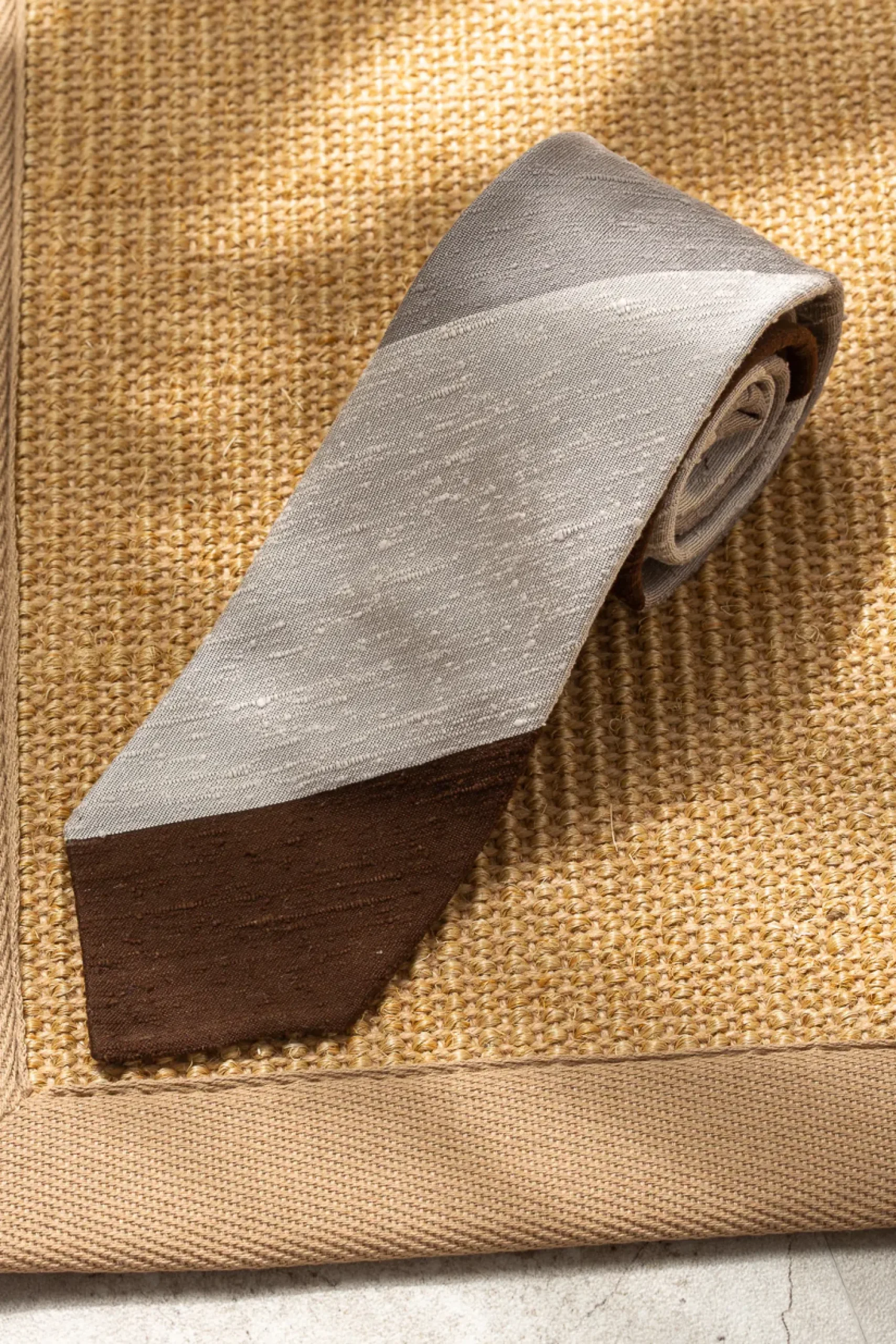 The Shantung Silk Is A Luxurious Fabric Known For The Irregularity Of The Surface And The Presence Of Precious Slubs In The Warp. The Texture Of The Tie Has Rich And Rough Texture. Every Tie Is Unique Because The Slubs Are Distributed Randomly. In Order To Emphasise The Beauty Of This Shantung Fabric, The Tie Is Made Unlined And The Edges Are Hand-Rolled.