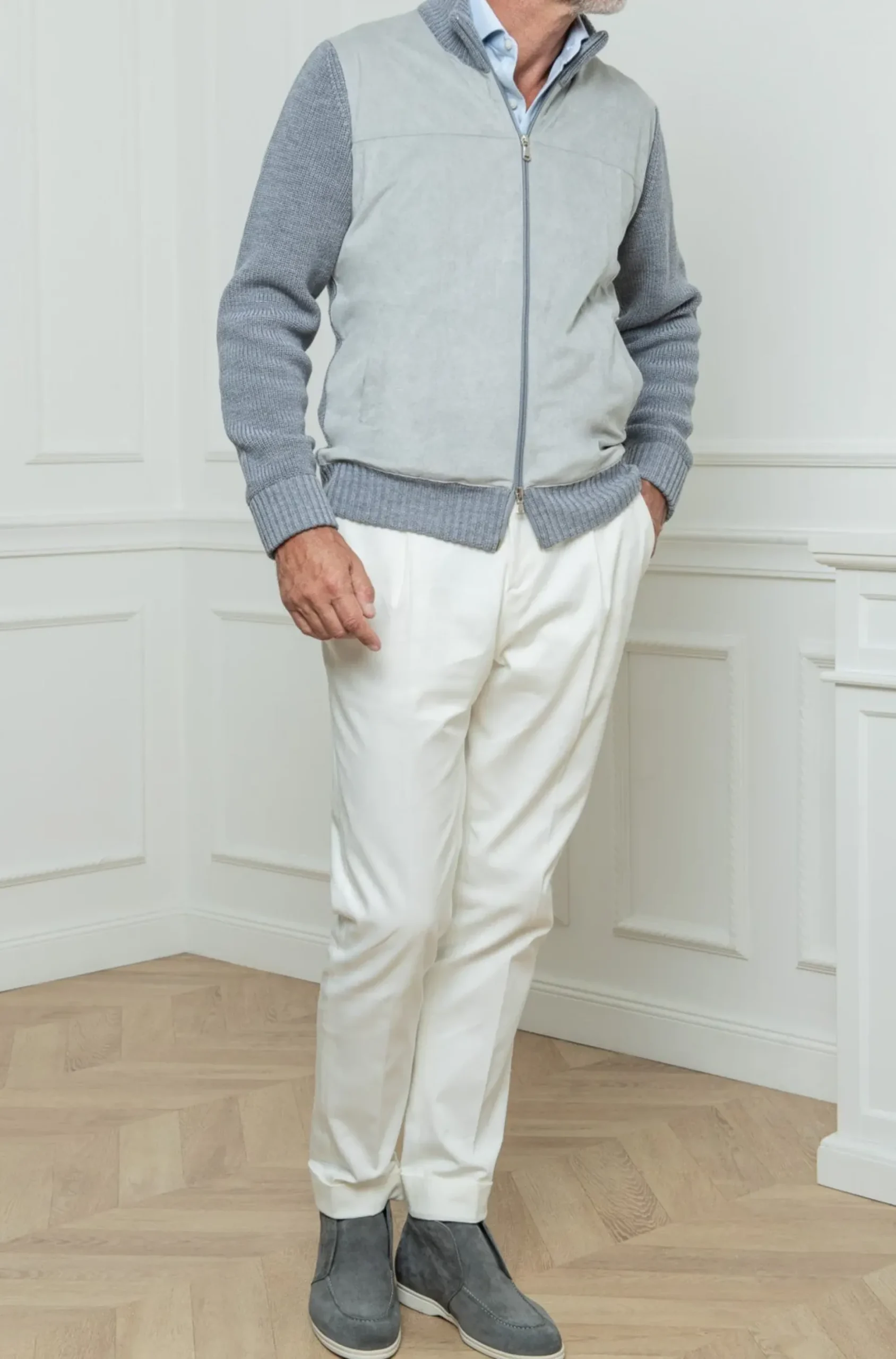 Warm And Elegant, Our Cardigan Will Add Casual Elegance To Any Outfit. It Features An Alcantara Front Panel, A Full Zip Closure And Welt Pockets.