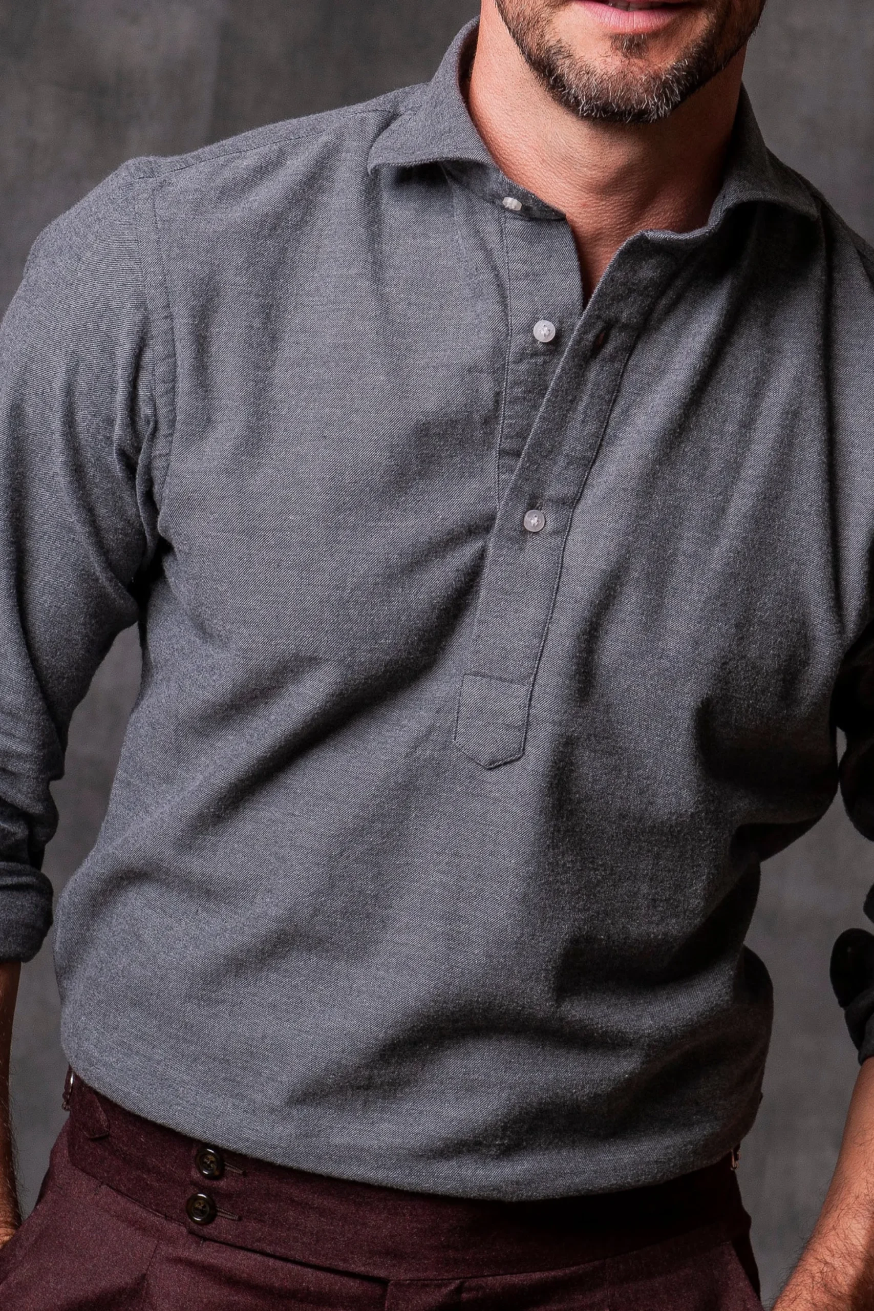 Made In Italy By Our Renowned And Trusted Shirtmaker, This Popover Shirt Is The Perfect Balance Between Casual And Formal As It Features A Half-Length Button Placket.