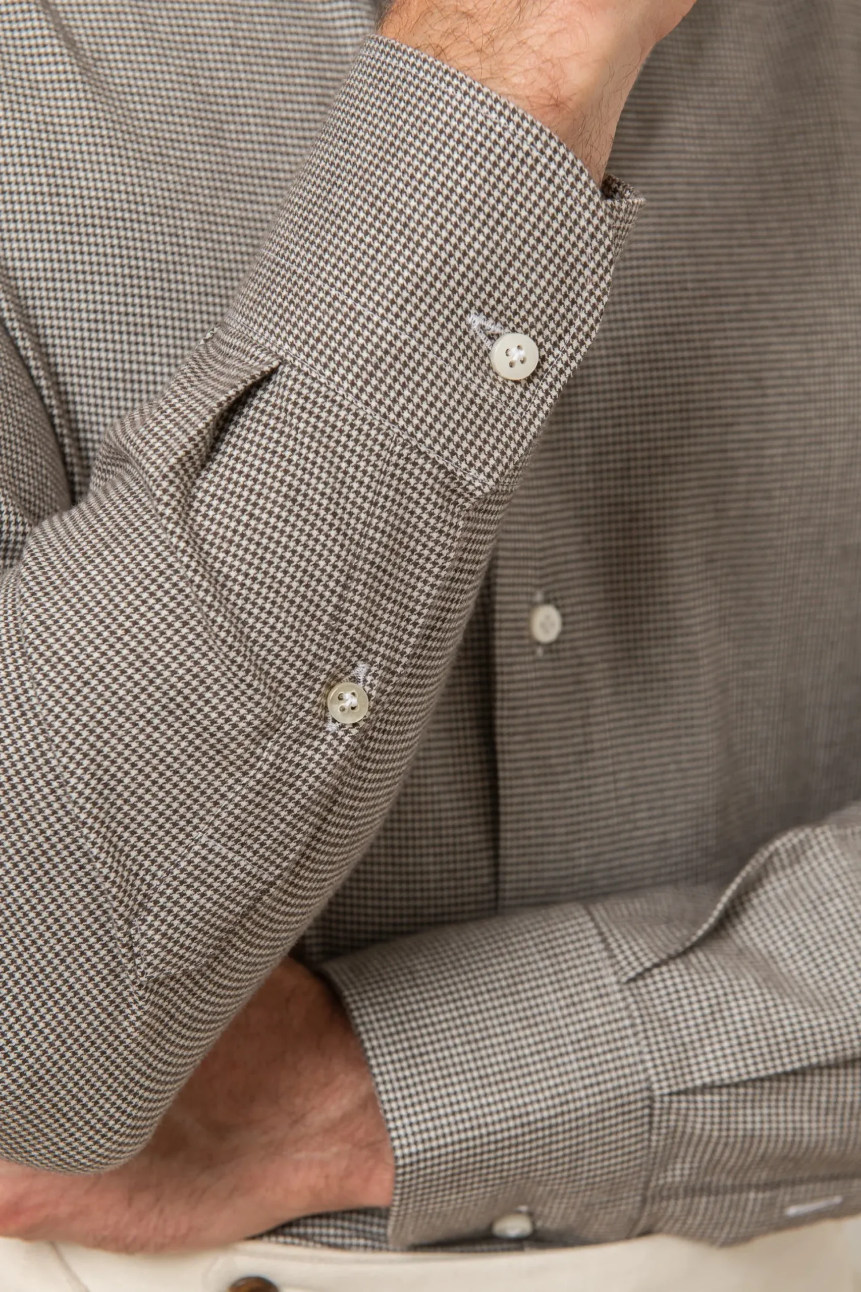 Made In Italy By Renowned And Trusted Shirt Maker, This Houndstooth Patterned Shirt Has A Slim-Fit. Perfect When Worn Under A Knit Or Safari Jacket.