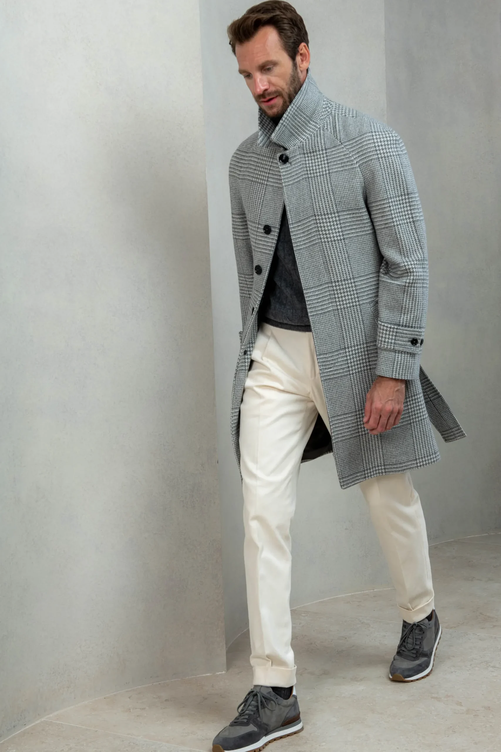 Our Raglan Coat Features A Five-Button Closure Up To The Neck, A Waist Belt And Diagonal Front Welt Pockets. A Box-Pleat At The Back Finishes The Piece.