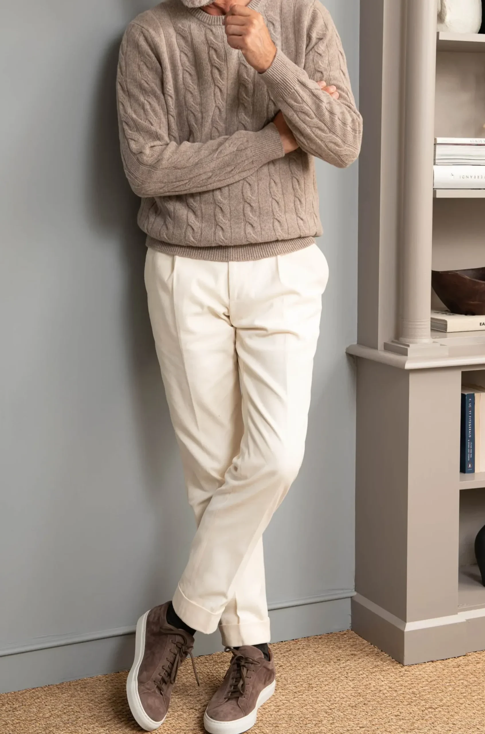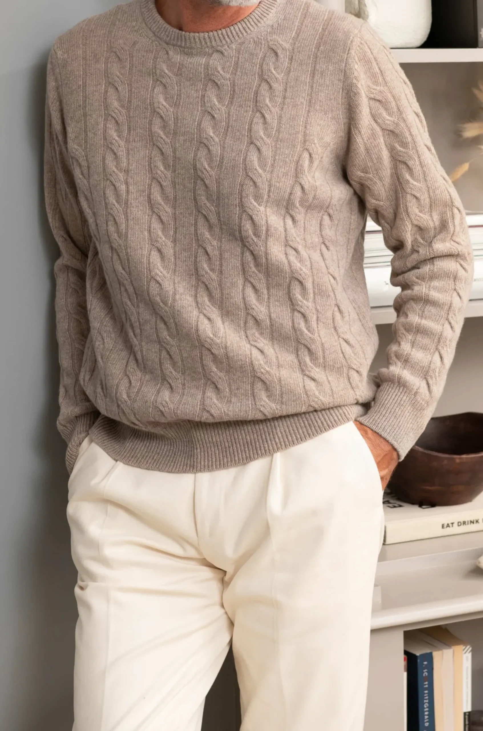 This Cable Knit Sweater Has A Textured Weaved Pattern And Is Made From A Blend Of Wool And Cashmere. Warm As Well As Comfortable, This Sweater Adds A Textual Element And Never Goes Out Of Style. Wear Underneath A Jacket Or Paired With A Suit.