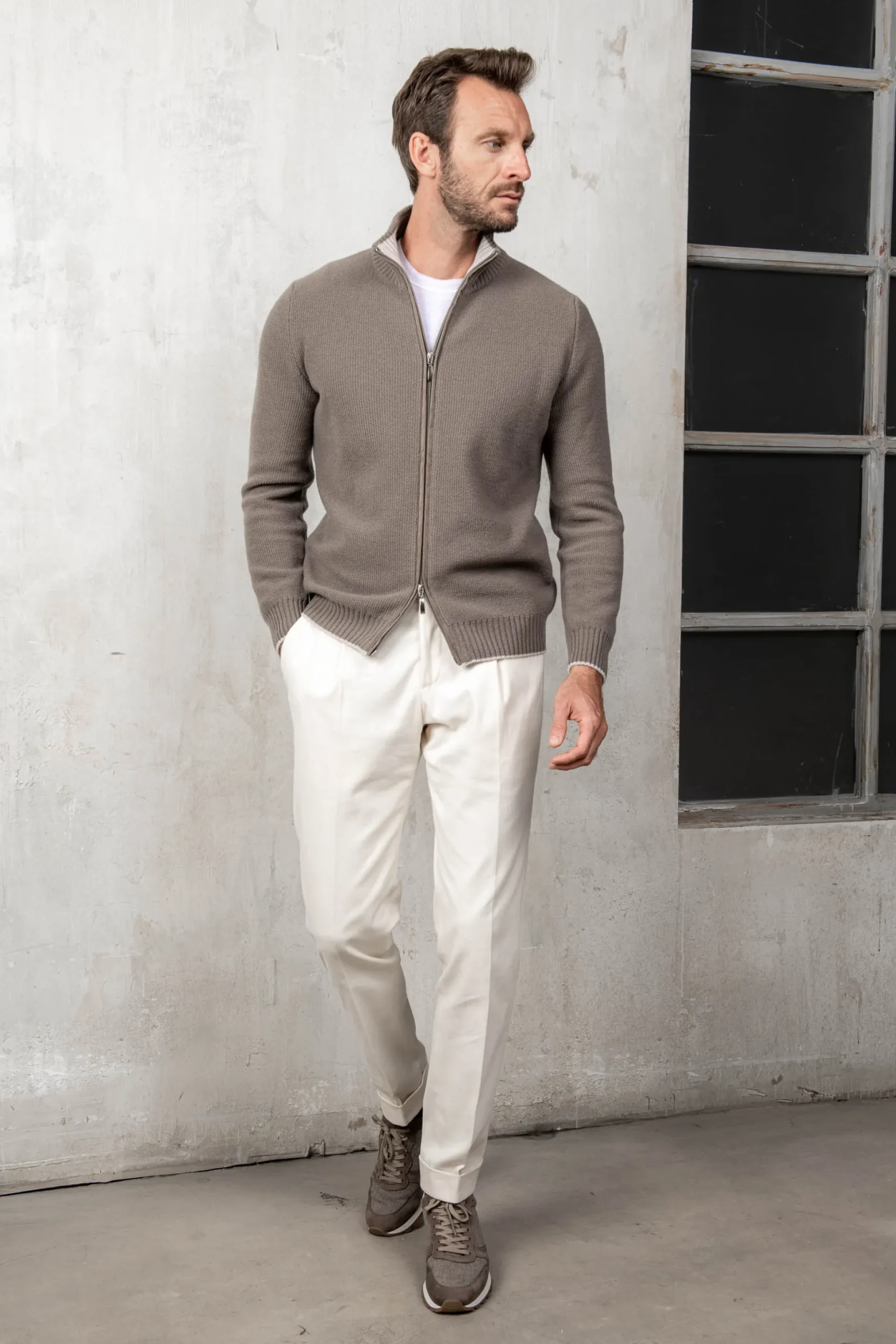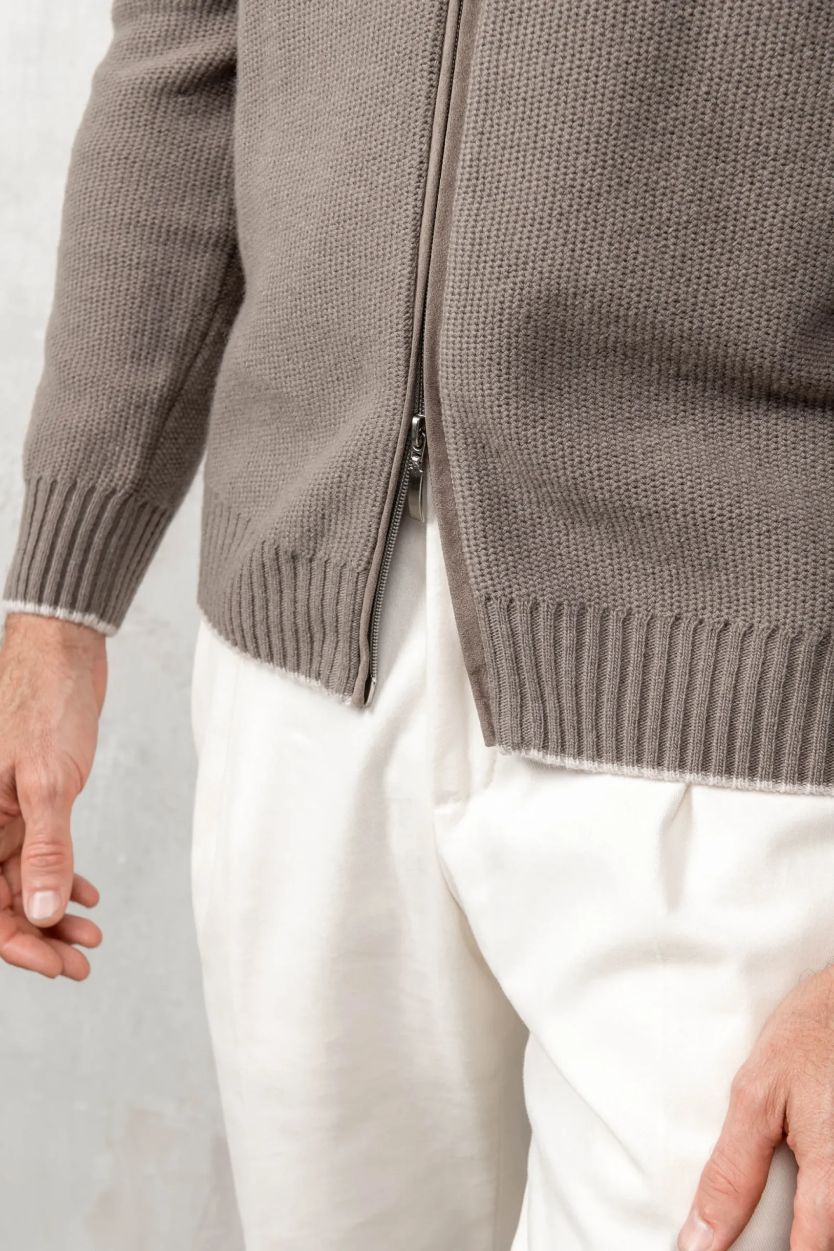 Warm And Elegant, This Honeycomb Pattern Full Zip Enhances Outfits With A Touch Of Casual Elegance. It Is Crafted From A Blend Of Wool And Cashmere And Features A Two-Way Full Zip Closure.