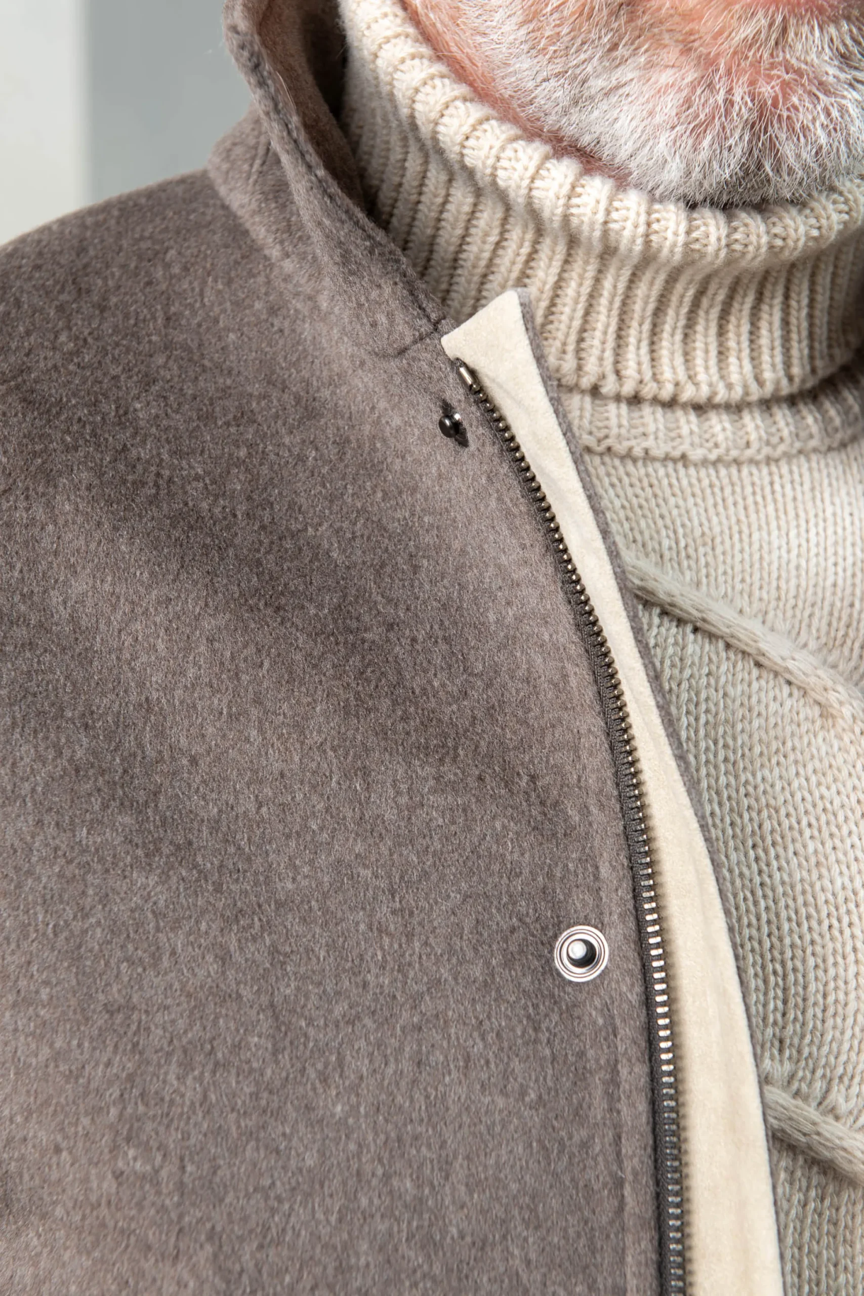 Our Taupe Short Coat Will Be Your Best Ally To Remain Elegant When The Temperatures Start Going Down. It Is Crafted From Water Resistant Wool And Features A Removable Shearling Collar, An Adjustable Hood, Four Front Pockets As Well As Two Inside Zip Pockets. A Button And Zip Closure Finishes The Piece.