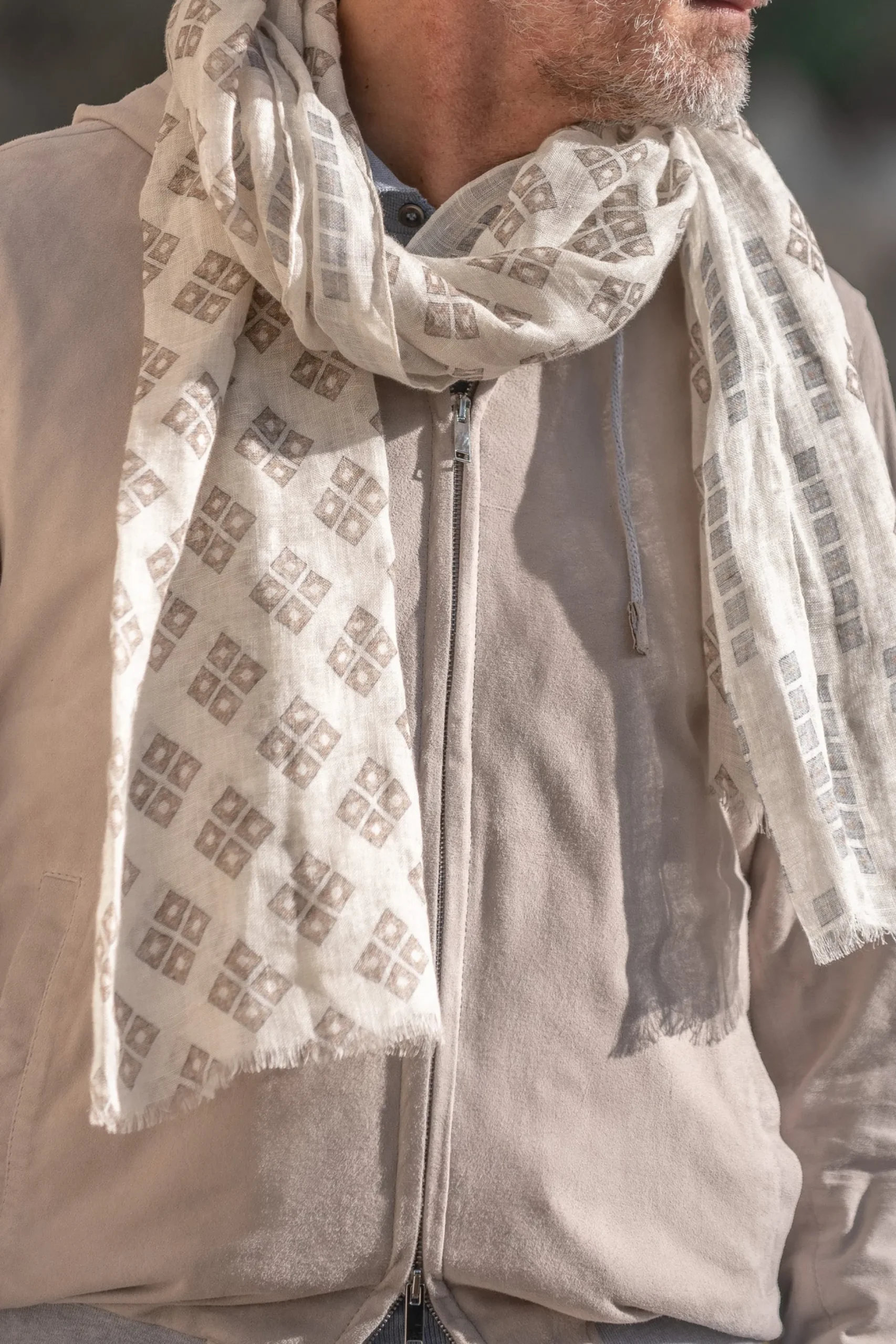 Add A Touch Of Sophistication To Any Outfit With Our Patterned Scarf Crafted From Superfine Lightweight Linen, Woven In Biella.