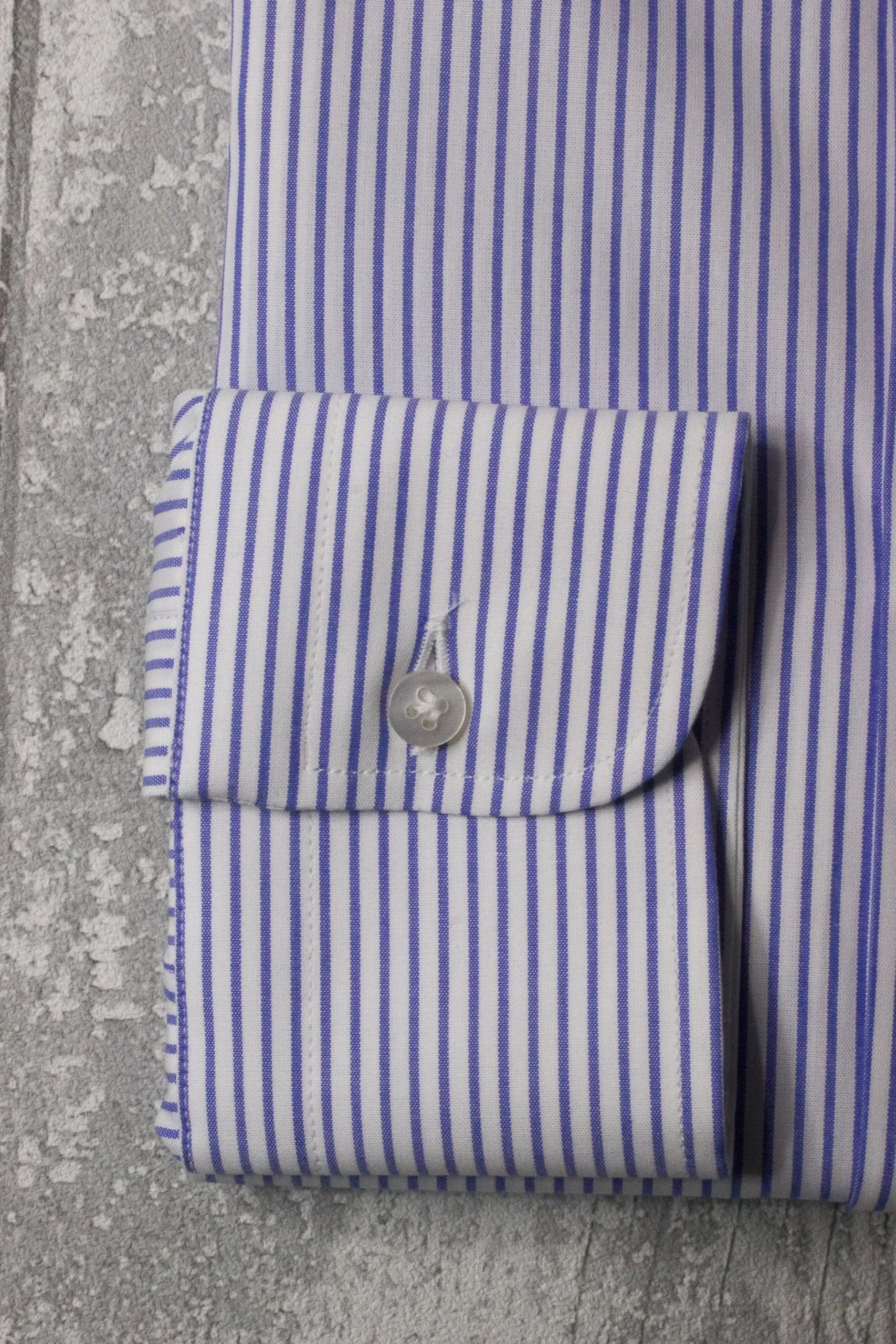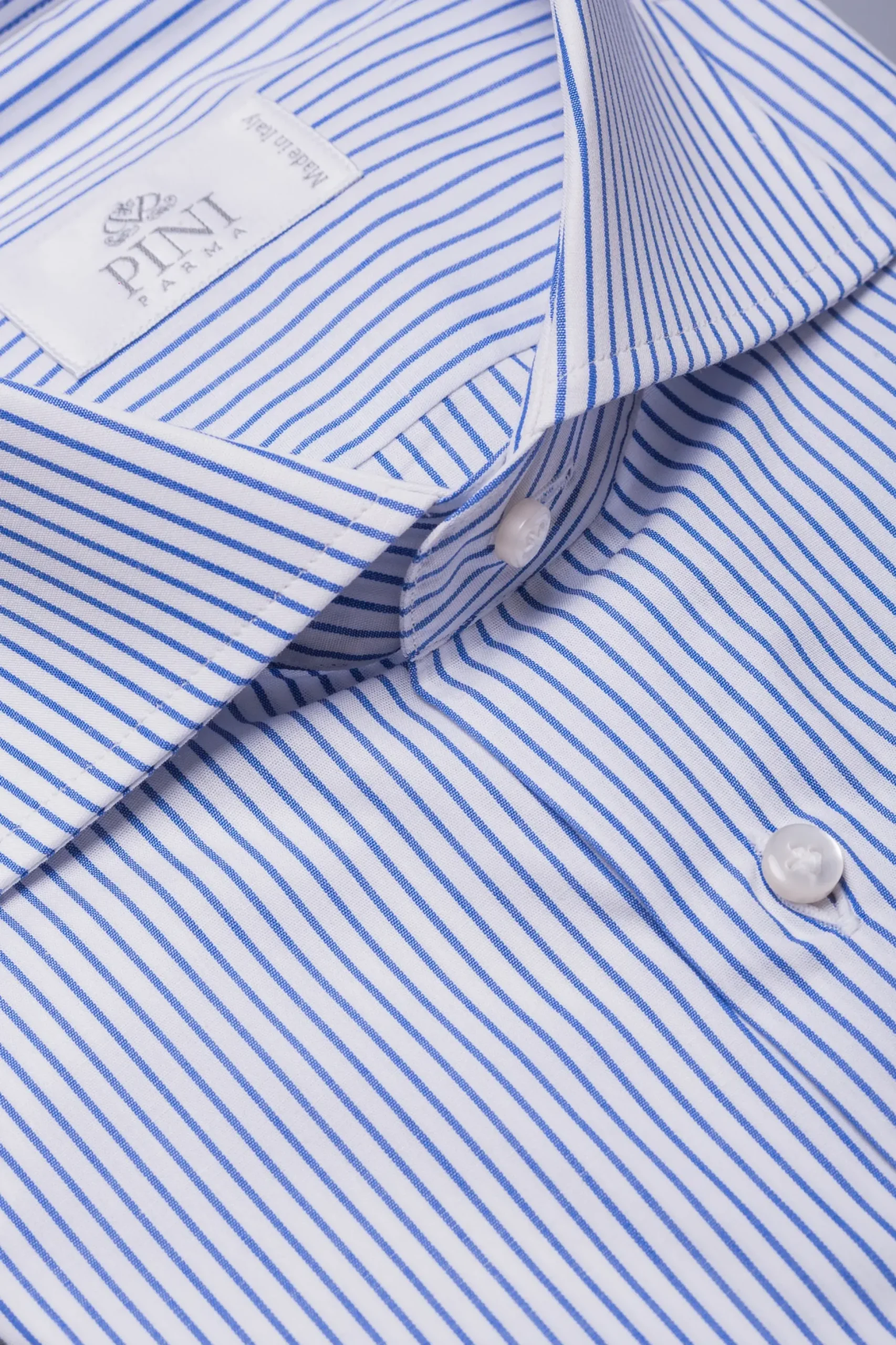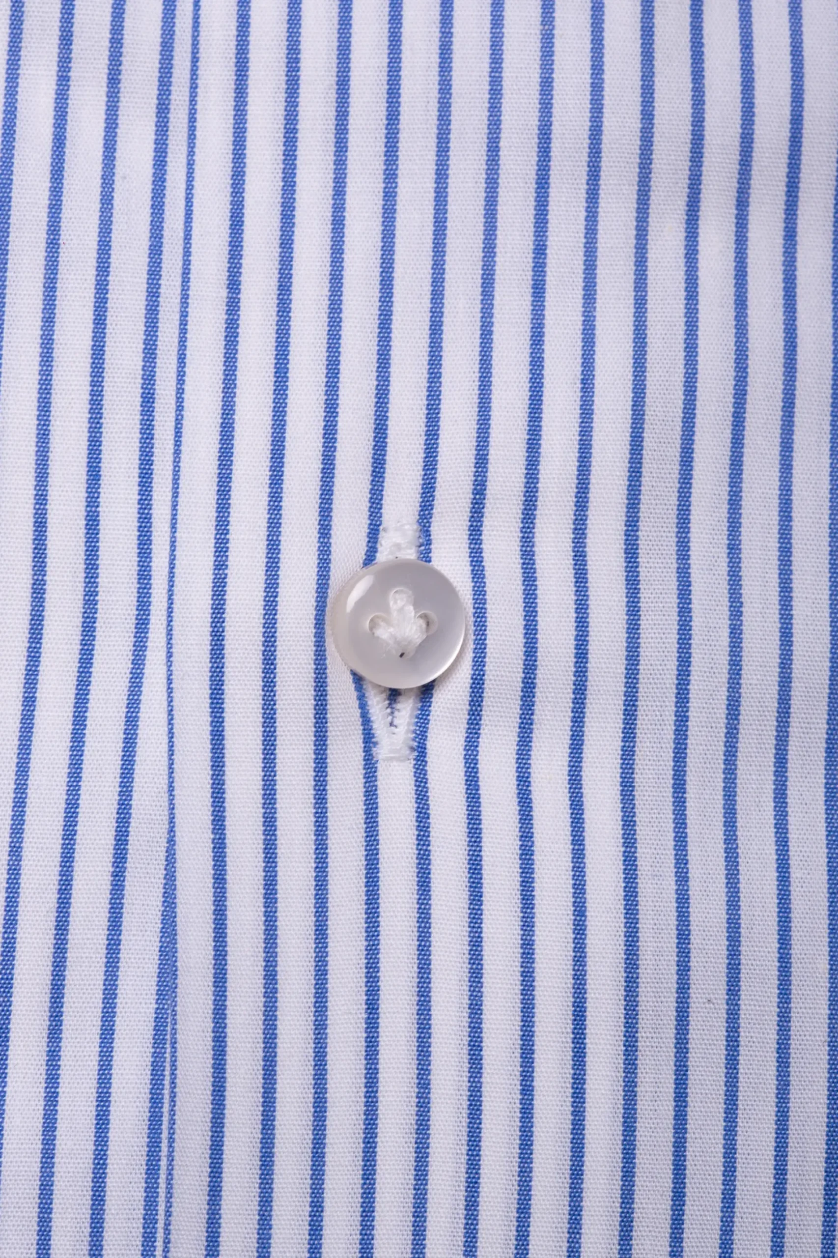 Made By Our Selected Italian Tailors Who Have A Strict Eye For Detail, This Avio Blue Striped Shirt Is Made With A Slim Fit Which Makes It Both Elegant And Modern At The Same Time.