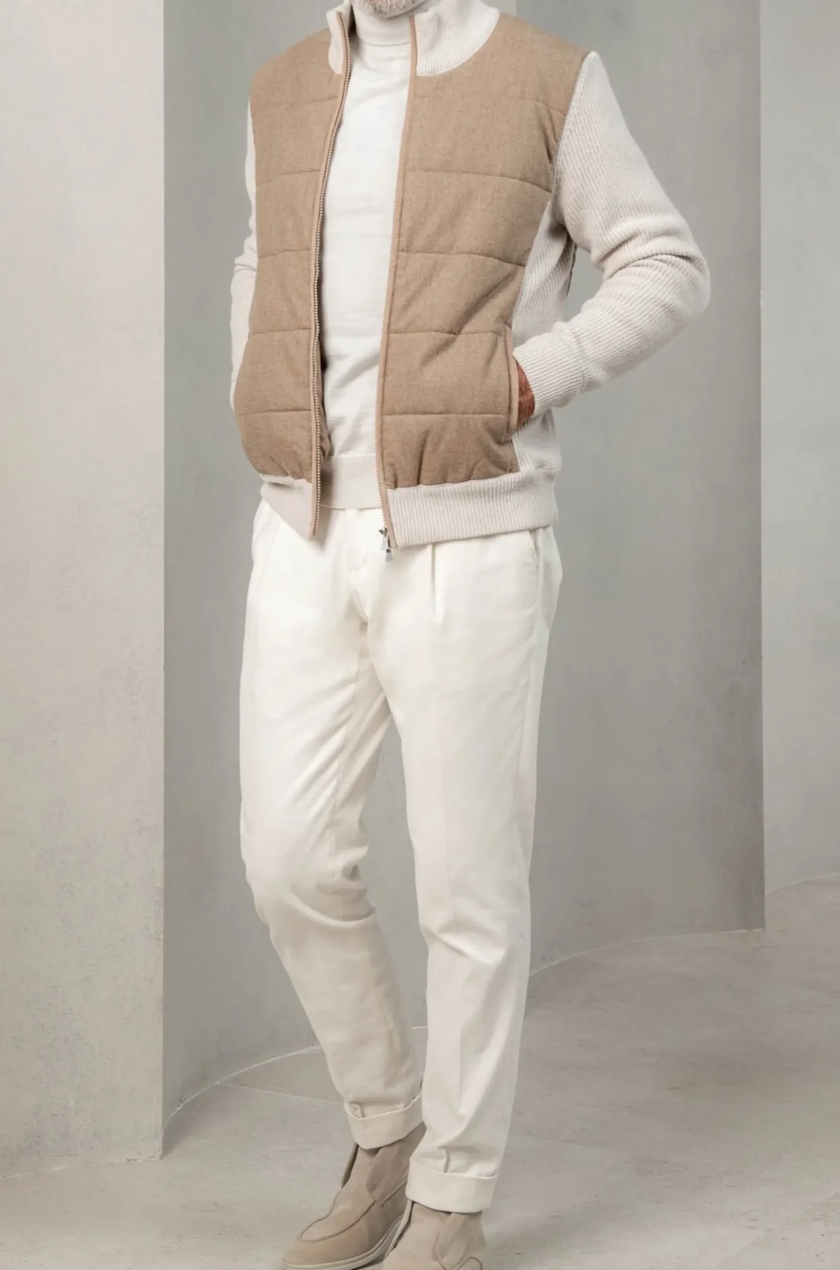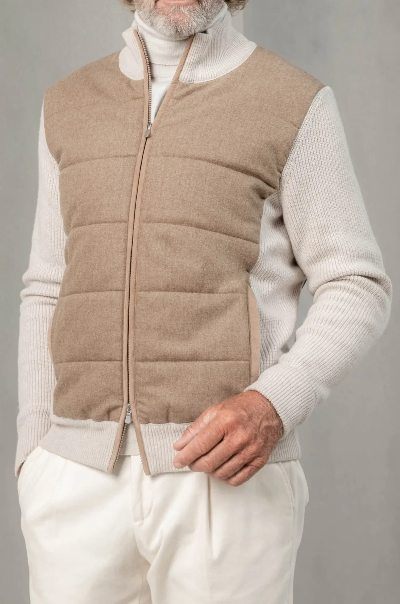 Composition: Flannel Wool Front Panel And Heavy Knitted Wool Sleeves, Collar And Hem